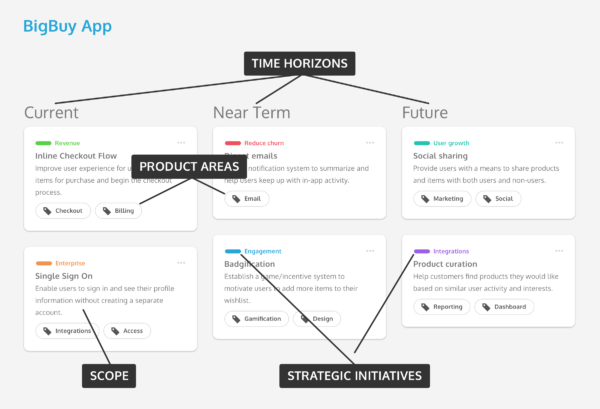 At ProdPad, we call our time horizons “Current”, “Near-Term” and “Long-Term.” At FourSquare, they go with “#now” “#next” and “#later”. Whatever works for you.