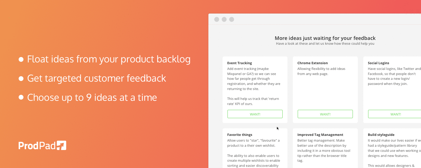 That’s what makes this an extra special feature of the Portal: You can roll out a handful of ideas (up to 9) from your product backlog and ask your customers what they think.