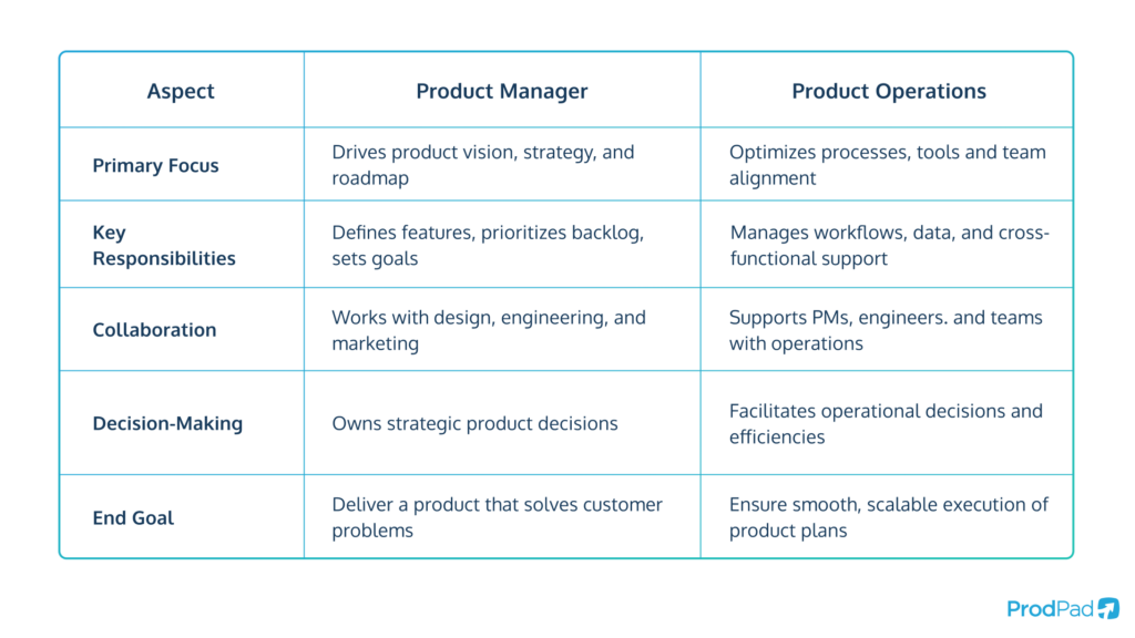 While Product Managers focus on product strategy, vision, and execution, Product Operations exist to focus on the logistical, operational, and process-focused tasks and decisions that can pull PMs away from their core responsibilities.