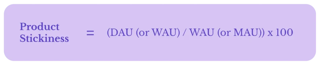 Product stickiness tells you how often users return to your product within a given timeframe. The key here is choosing the right timeframe based on how frequently you expect users to engage.