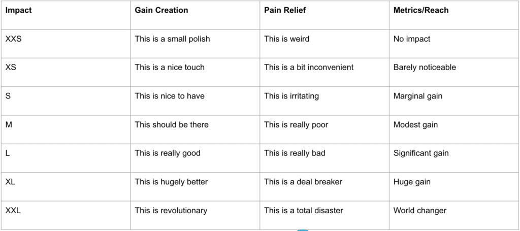 Now, I realize it can seem a bit scary to try and define “effort” for other teams, but this is simply a product manager’s ‘Gut Feel Meter.’ You’re not meant to size up new ideas – but you do have an initial reaction on whether it will be impactful. You may want to consult with team leaders to learn how they work and the resources they have at their disposal.