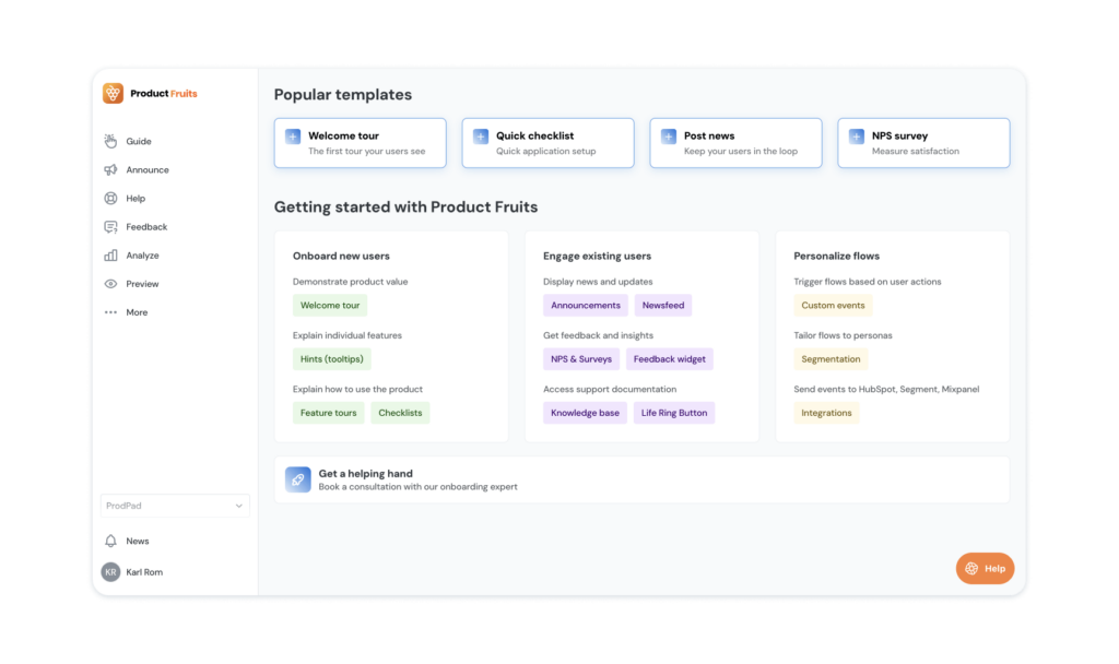 That concludes our list of the best user onboarding software tools. You should find a tool that works for you in terms of both functionality and budget from that lot. For the record, here at ProdPad we use Userflow. If you want to see that tool in action, why not start a free trial of ProdPad and take a look at our onboarding flows. We’d love to know what you think!