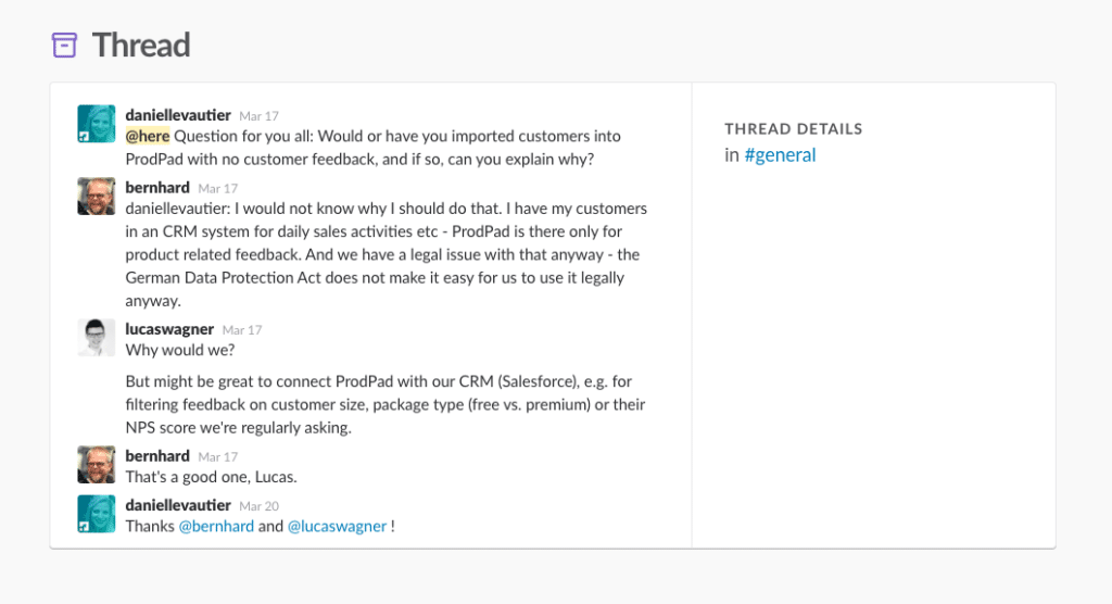 Imagine if we had a Slack product community and said stuff like: “We’re not at liberty to say…” or “That’s under wraps at the moment.” How frustrating that would be and a waste of time for our customers too.