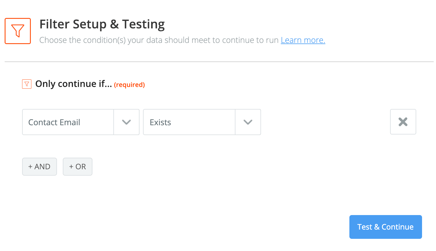 We’ve set up an additional filter to continue only if the contact email is present in ProdPad. This is to ensure the Zap doesn’t throw constant fail notices when anonymous feedback is submitted.